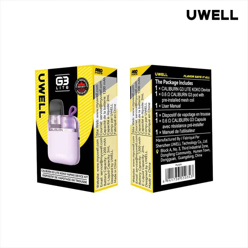 Uwell Caliburn G3 Lite Koko Pod Kit is a portable, affordable, and enjoyable vaping device. With a 25-watt output and long-lasting 1200mAh battery, it provides a seamless experience. Ultrasonic Welding and U-shaped Channel Designing enhance airflow and