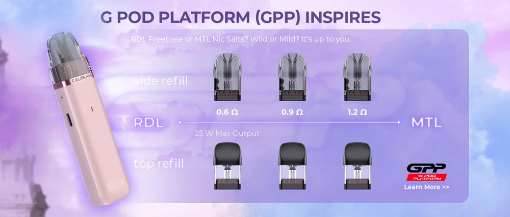 - Pod Capacity: 2.5ml/ GPP cartridge 3ml