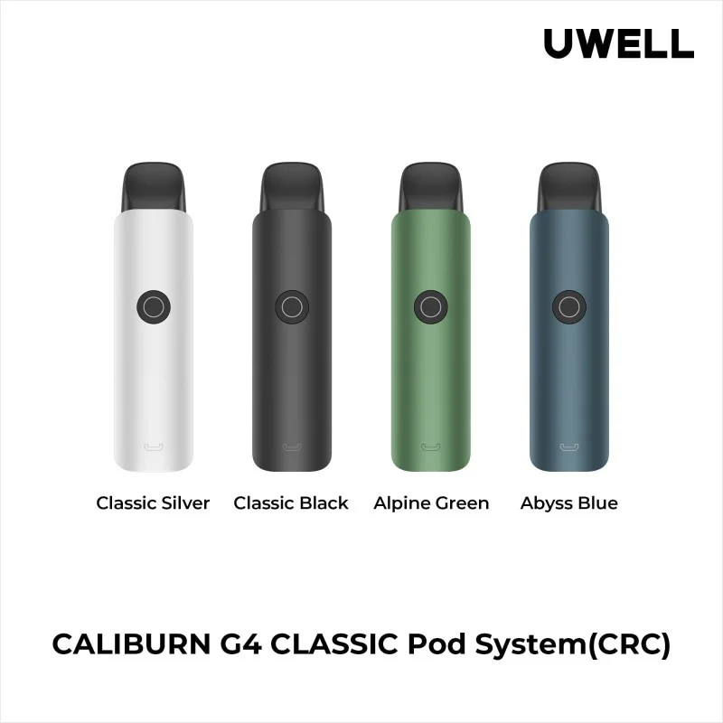 The Uwell Caliburn G4 Classic Pod Kit 2025 is a simple and reliable MTL device without screen. A strong 1400mAh built in battery and fast USB-C charging with Uwell advance Pro FOCS flavor technology. It delivers rich, accurate flavor and a consistently smooth nicotine experience compatible with both nicotine salts and freebase e-liquids.