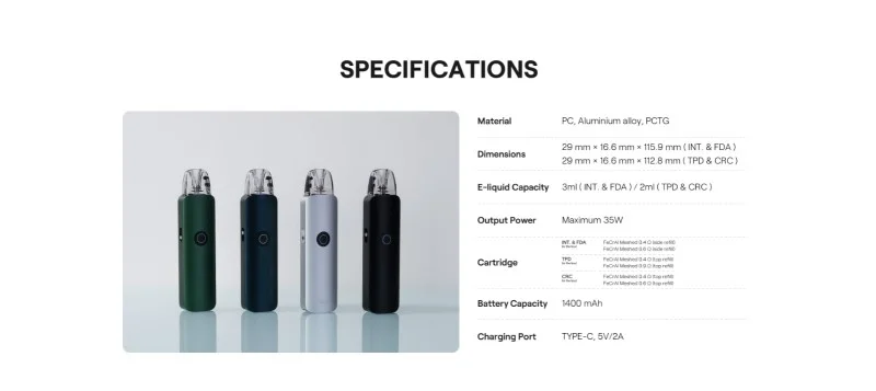 - Flavor Technology: Pro-FOCS flavor system for enhance taste purity