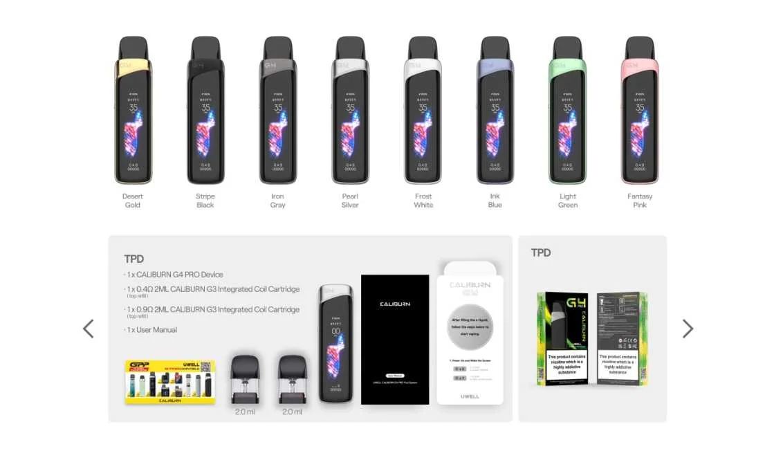 Uwell Caliburn G4 Pro Pod Kit System colors
