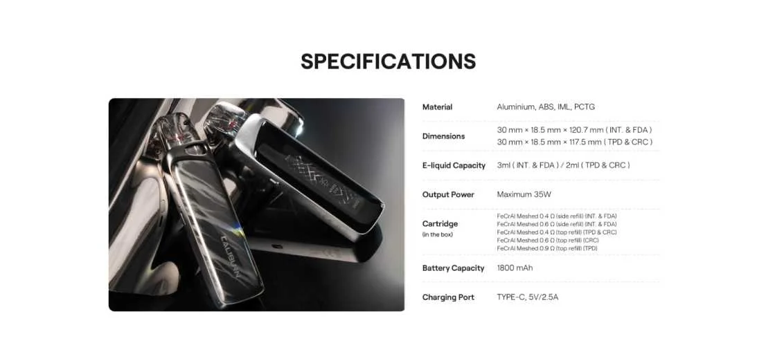 Uwell Caliburn G4 Pro Pod Kit Specifications