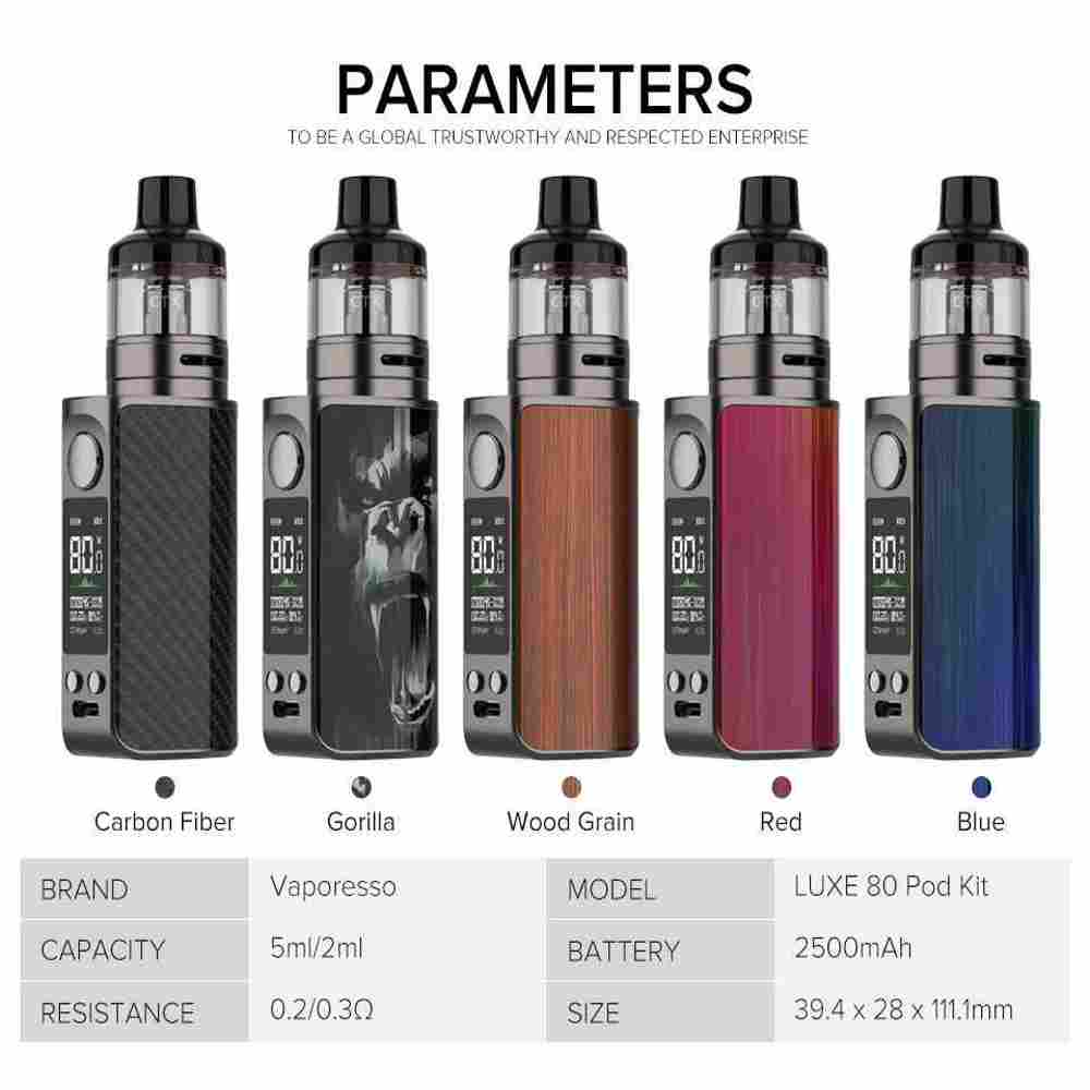 Vaporesso Luxe 80 Pod mod starter Kit to debut from Vaporesso LUXE series. A powerful and versatile vape experience in a super compact and rugged form while being house in premium, luxurious materials.