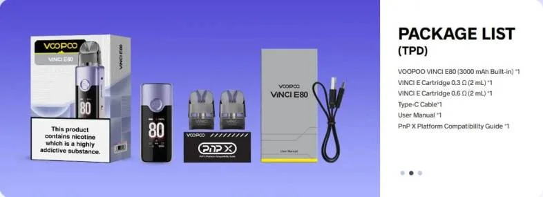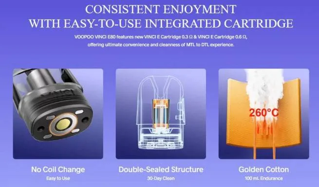 The Voopoo Vinci E80 Pod Mod Kit 2025 perfect device for long term use, combine sub-ohm performance with pod system convenience in one sleek device. This 80W features Voopoo’s advance GENE.TT 2.0 chipset for instant fire and precise wattage control, deliver RDA level flavor from its 5ml refillable pods.