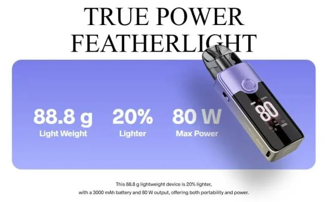 At just 88.8 grams, it is 20% light than conventional pod mods, make it easy to carry in pocket during busy days in Rawalpindi or Multan. The smooth, matte finish ensures a solid grip, the futuristic 1.47” TFT screen adds a touch of sophistication.